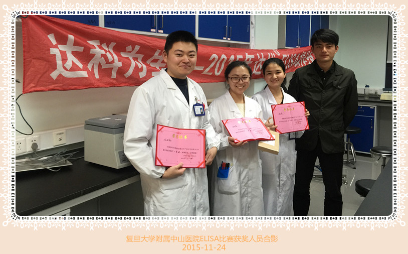 上午10點在復旦大學附屬中山醫(yī)院開始比賽,一直到下午4點結束。參賽人員是來自呼吸科、神經科、消化科 、放療科、心內科、肝外科等科室的11位研一老師參加比賽,其中有4人獲獎。一等獎1名獲得kindle電子書,二等獎1名獲得充電寶,三等獎1名獲得自拍桿一個。心動了吧,不如行動,集齊隊員即可參加我們的ELISA比賽哦!
