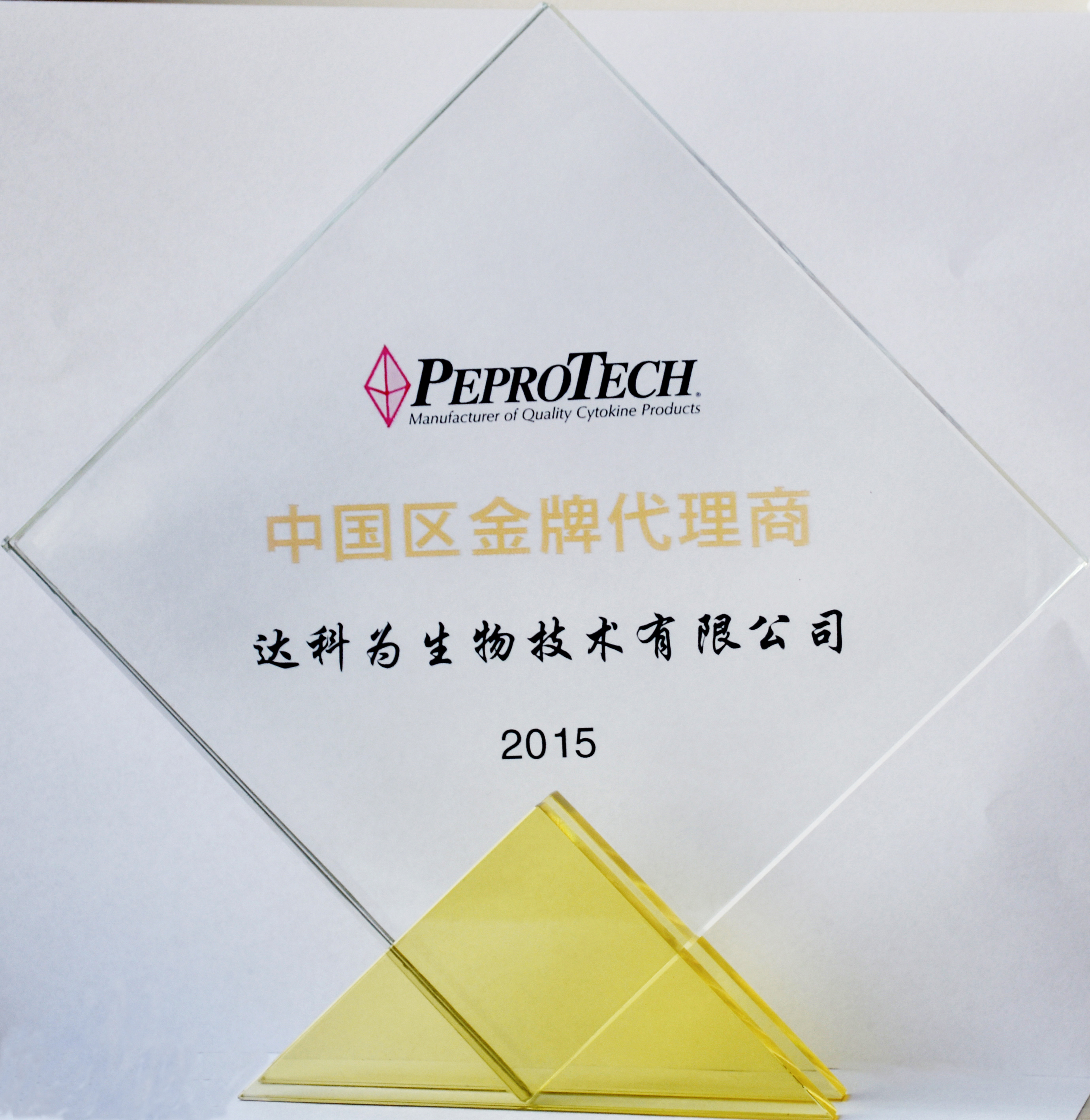 達(dá)科為生物榮獲 PeproTech 2015年度“中國區(qū)金牌代理商”