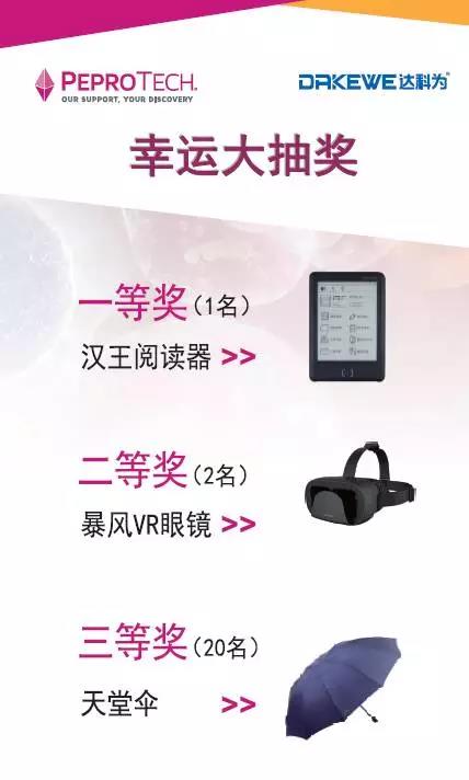 感謝所有參與本次活動(dòng)的老師與工作人員的配合與支持!達(dá)科為&PeproTech攜手合作,在本次會(huì)議中積極響應(yīng),還為大家準(zhǔn)備了幸運(yùn)大抽獎(jiǎng)!