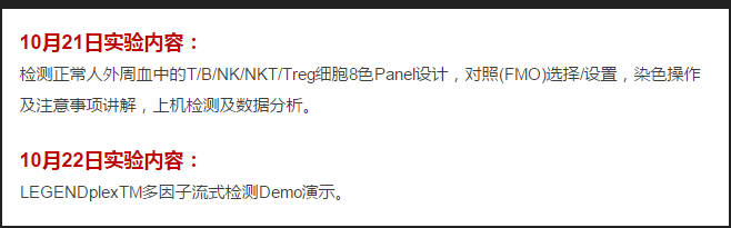 黃金十月,達(dá)科為流式培訓(xùn)班要來(lái)沈陽(yáng)啦,專(zhuān)業(yè)講解,理論與實(shí)驗(yàn)雙管齊下,輕松完成流式八色檢測(cè)分析,更有LEGENDplexTM多因子Demo演示。流式上機(jī)名額有限,歡迎踴躍報(bào)名!