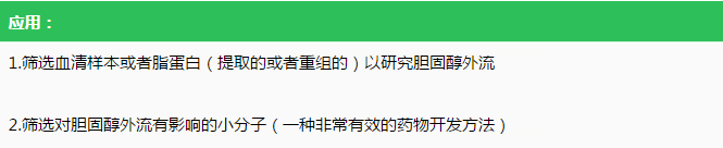 文獻:【1】 劉杰等.細胞膽固醇外流率的測定以及細胞外膽固醇和脂多糖對其的抑制作用[J].中國組織工程研究,2016,20(7):1000-1005