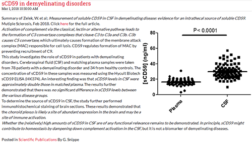Hycult Biotech公司在天然免疫研究方面積累了豐富的經(jīng)驗(yàn),其新明星產(chǎn)品Soluble CD59 ELISA試劑盒已經(jīng)在文獻(xiàn)中發(fā)表,文獻(xiàn)結(jié)果如圖顯示:
