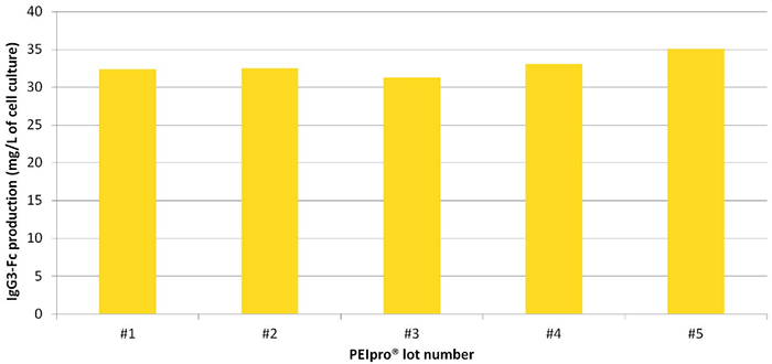 圖5.使用不同批次PEIpro?生產(chǎn)蛋白的得率具有極佳的重復性
