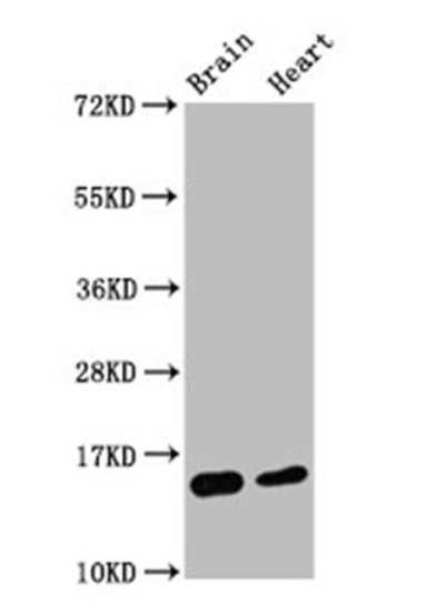 圖1. 使用0.55 ug/ml Histone H3.1K4me2單克隆抗體(貨號:A68400)檢測小鼠腦和心臟組織Histone H3.1K4me2蛋白表達(dá)水平,檢測到目的蛋白大小15 KDa。